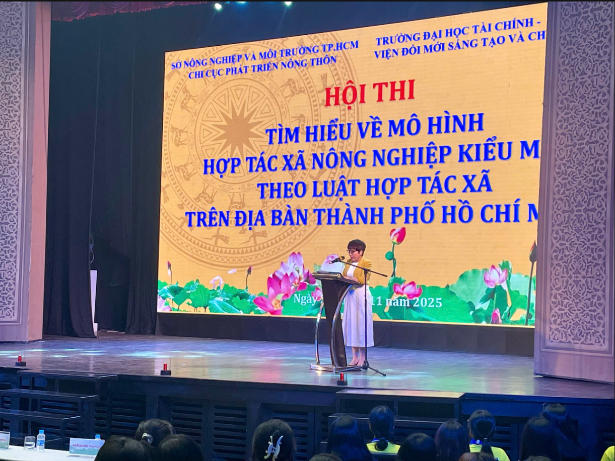 Chiều ngày 24/11/2025, Vòng Chung kết Cuộc thi “CoopUp Challenge 2025 - Thanh niên với Luật Hợp tác xã” đã diễn ra thành công tốt đẹp tại Nhà Văn hóa Thanh niên TP.HCM. Sự kiện do Viện Đổi mới sáng tạo và Chuyển đổi số cùng với Đoàn Trường và Hội sinh viên Trường Đại học Tài chính - Marketing (UFM) phối hợp với Chi cục Phát triển Nông thôn TP.HCM (Sở Nông nghiệp và Phát triển nông thôn TP.HCM) đồng tổ chức.
