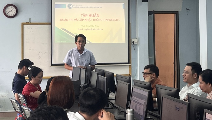 Thực hiện Thông báo số 1049/TB-ĐHTCM-QLTSCNTT ngày 10/4/2025 của Ban Gia hiệu Trường Đại học Tài chính - Marketing, Phòng Quản lý tài sản và Công nghệ thông tin đã tiến hành tổ chức tập huấn quản trị và cập nhật thông tin website cho viên chức làm công tác quản trị website của các đơn vị thuộc Trường vào ngày 15/4/2025. Chủ trì đợt tập huấn lần này là ThS. Trần Minh Tùng, Phó Trưởng phòng - Phòng Quản lý tài sản và Công nghệ thông tin. Tham gia hỗ trợ tập huấn là ThS. Trần Viễn Phúc thuộc Phòng Quản lý tài sản và Công nghệ thông tin.